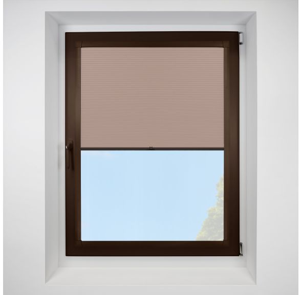 Astral Blackout Blush Perfect Fit Pleated Blinds with Brown Frame