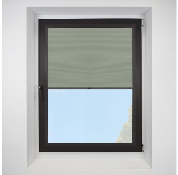 Astral Blackout Eucalyptus Perfect Fit Pleated Blinds with Black Frame