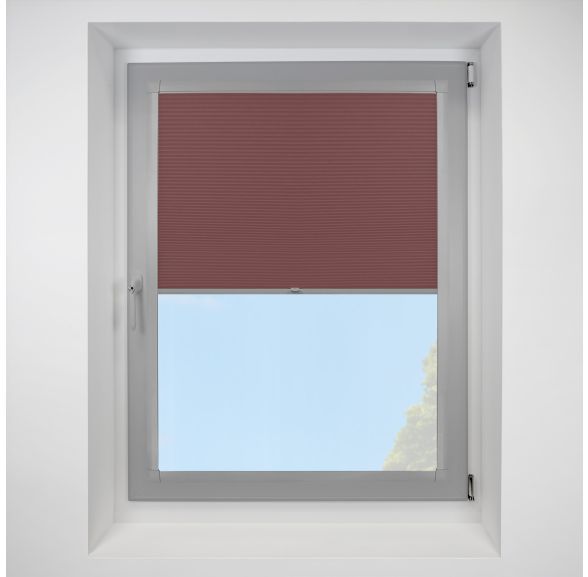 Astral Blackout Red Rust Perfect Fit Pleated Blinds with Light Grey Frame