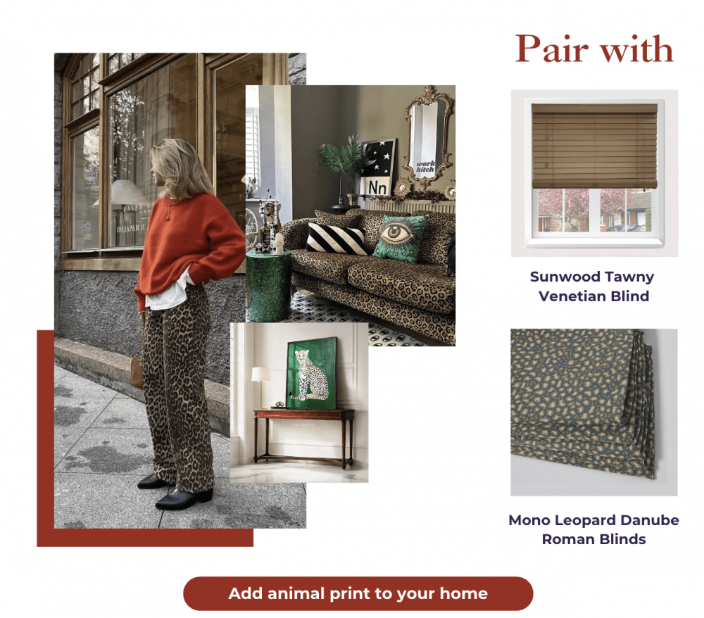 1. Cheetah print- Arguably one of the most popular trends of 2024, the “mob wife aesthetic” shot cheetah print to the top of the agenda. Whilst this is a bold pattern, there’s still ways you can incorporate it into your home without it looking too garish. A cheetah print cushion or throw pairs perfectly with our Wood Effect Perfect Fit Venetians in Chesnut, ensuring a classy yet interesting look to your room. After something more neutral? Our collection of Perfect Fit Shutters and Perfect Fit Blinds offer black or grey options that would look great with leopard!