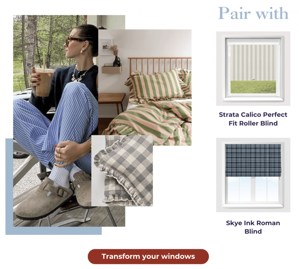 2. Checks and stripes- Plaid and tweed are making a comeback! This classic pattern looks great in a home and adds an English countryside feel to your rooms. At Direct Order Blinds we offer a wide range of patterns in both our Roller Blinds and Roman Blinds, including check and plaid options.