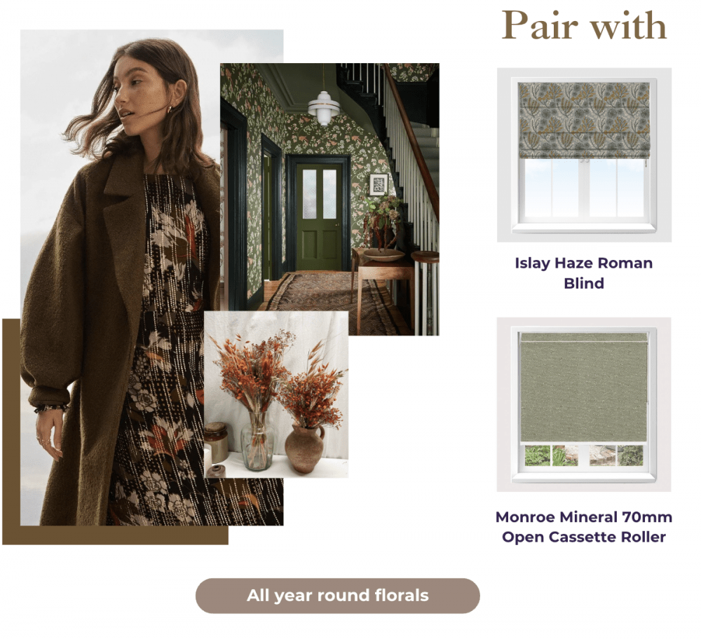 5.Florals- Florals for spring? Groundbreaking. Autumn, however, is a different story. This season it’s all about flowers, particularly of the dark variety. Dark purple, deep red and black are all the rage this autumn. We have a wide range of floral patterns available in both our Roller Blinds and Blackout Roller Blinds. From darker floral hues to the more traditional floral prints, you can pick a pattern to suit your style!