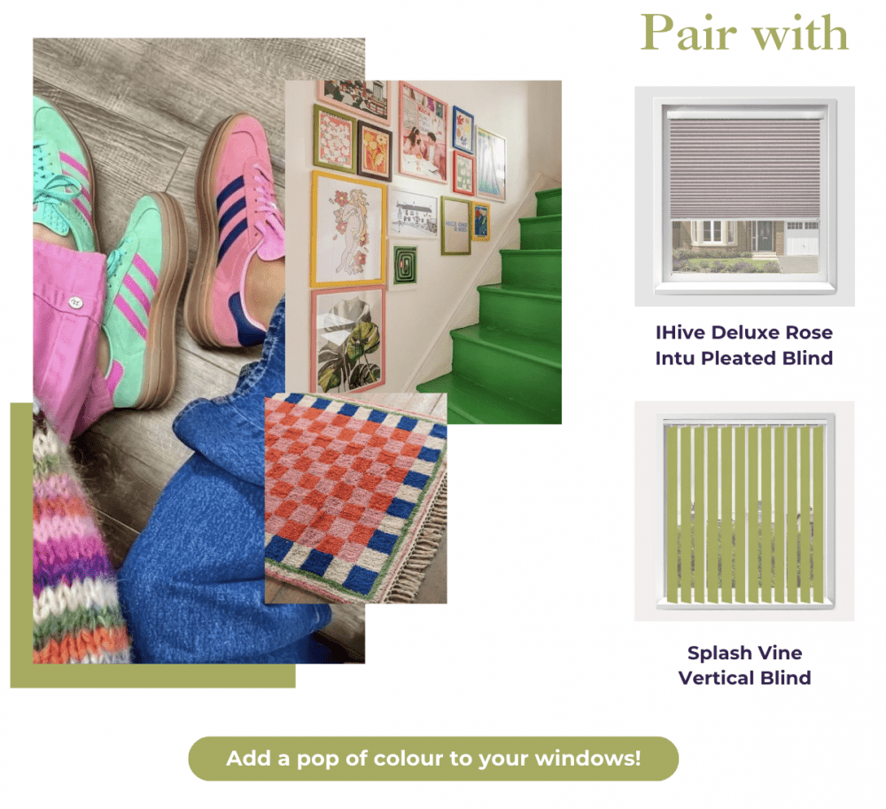 6. Colour clashing- Bright hues are carrying through from summer into autumn this year, with clashing shades a popular choice. Pink and green, blue and orange, vivid colours are the way to go this season. Our collection of Vertical Blinds, Roller Blinds and Roman Blinds offer a huge range of vibrant colours for your home. If you really want to lean into this trend, why not mix and match with different colours in each room? Alternatively, opt for a bright fabric and a bright wall colour, for the ultimate colourful wonderland.
