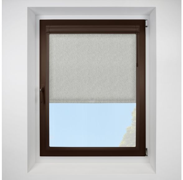 Herringbone Blackout Stone Perfect Fit Chain Operated Roller Blind with Brown Frame