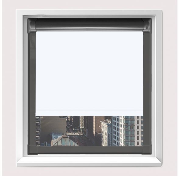 Motorised Ex Lite White Perfect Fit Roller Blind With Anthracite Grey Frame