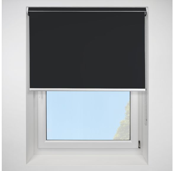 Open Cassette 40mm Banlight Duo Fr Blackout Black Roller Blind With Chrome Cassette