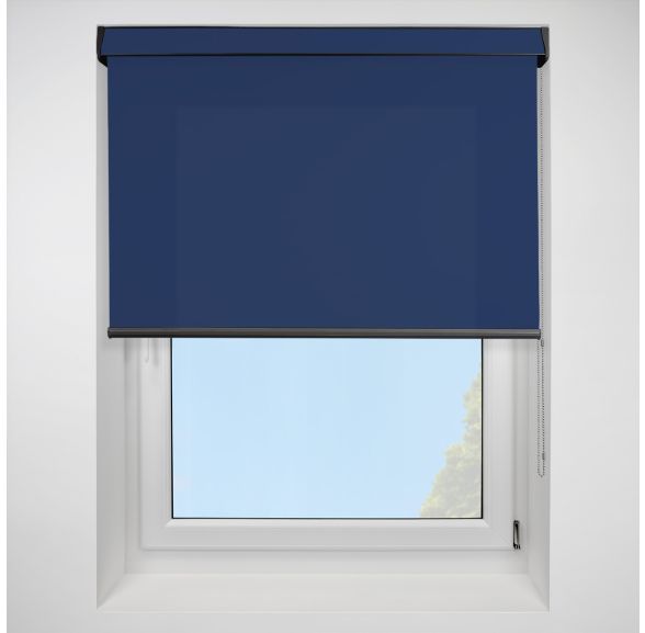 Open Cassette 70mm Urban Fr Blackout Blue Roller Blind With Black Cassette