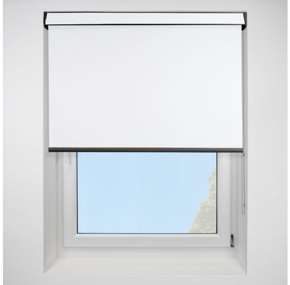 Open Cassette 70mm Urban Fr Blackout Bright White Roller Blind With Black Cassette