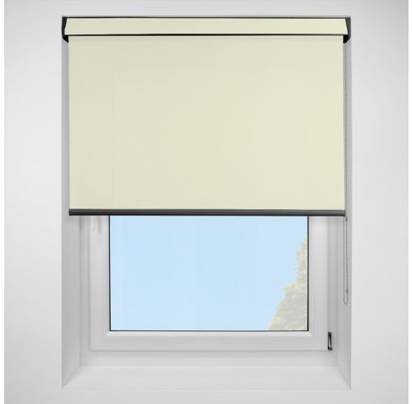 Open Cassette 70mm Urban Fr Blackout Ecru Roller Blind With Black Cassette