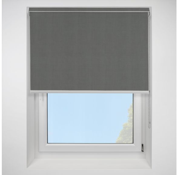 Open Cassette 40mm Linenweave Charcoal Roller Blind With Satin Cassette