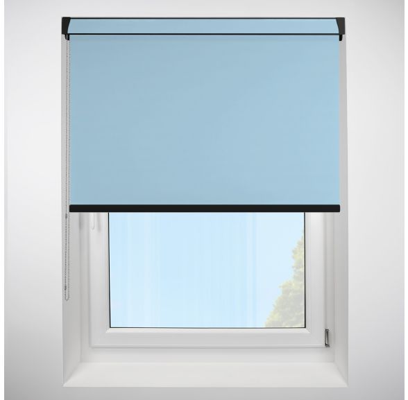 Polaris Blackout Baby Blue Grip Fit Roller Blind with Black Cassette