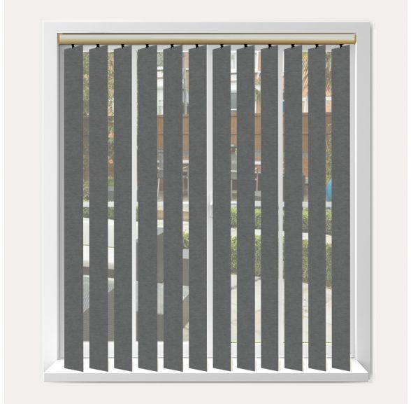 Vogue Linenweave Charcoal Vertical Blind With Champagne Gold Headrail